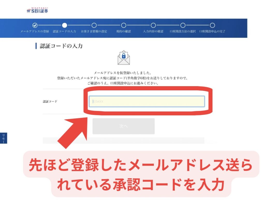 メールアドレスに届いている「承認コード」を赤枠部分に入力してください。