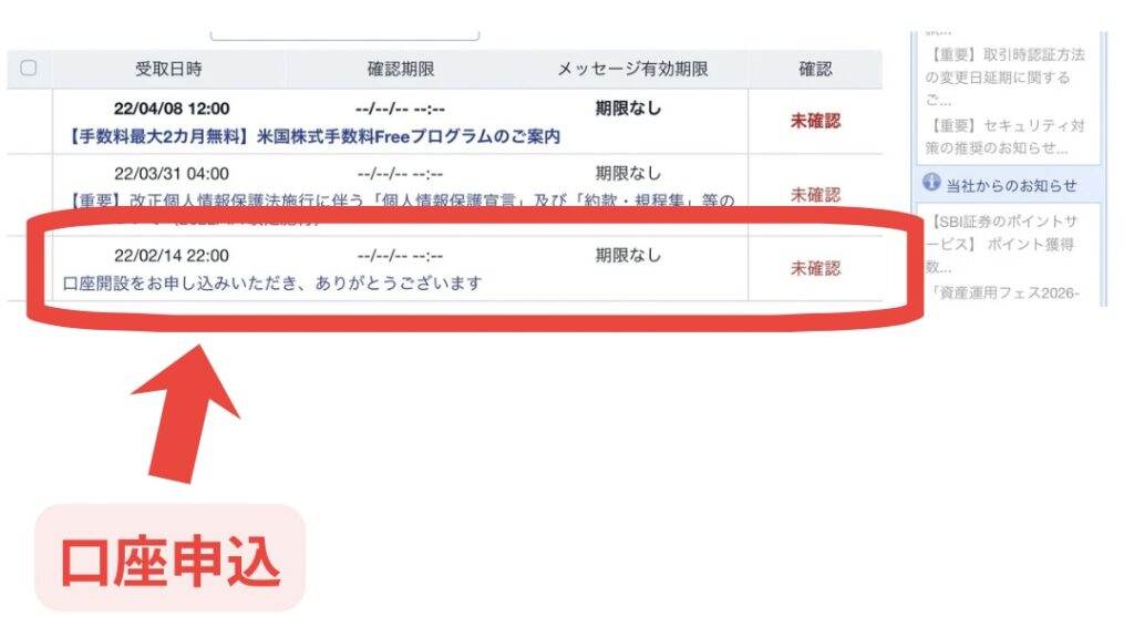 申し込み申請が完了したら、上記のように「口座開設を申し込み完了」の連絡がきます。