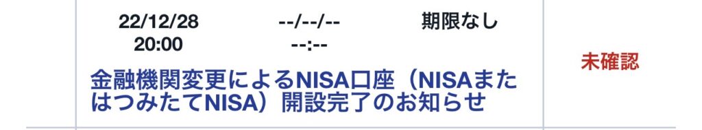 NISA口座が開設されたら、「NISA口座開設完了のお知らせ」が届きますので、そちらをチェックしてください。