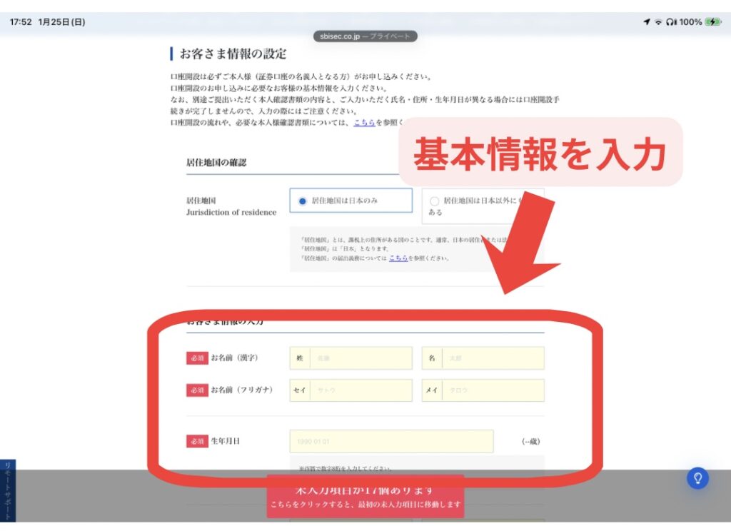 ここからは実際に口座開設の申し込みを進めていきましょう。