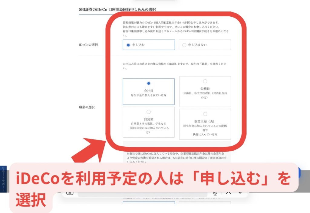 ・iDeCoを利用したい人は「申し込む」